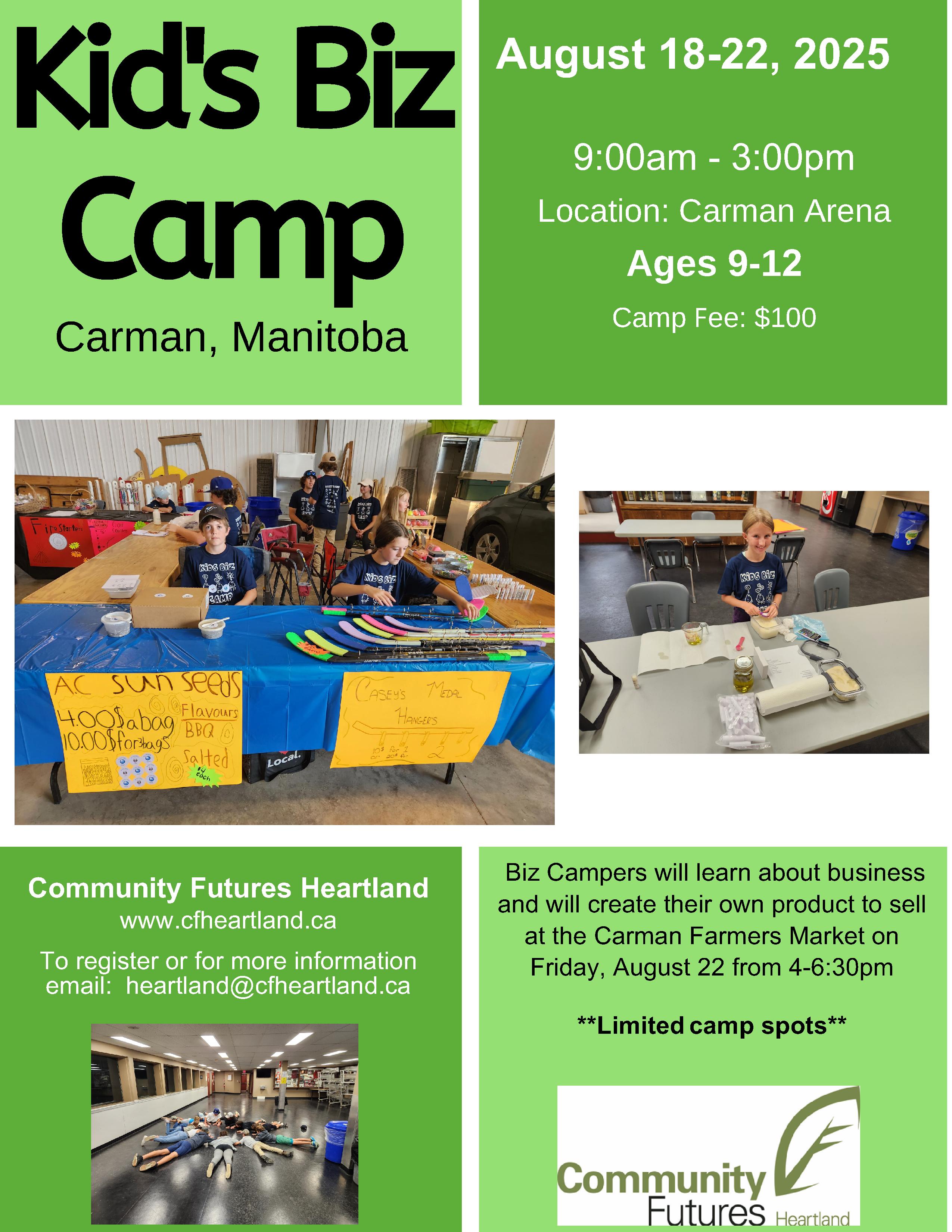 Kids Biz Camp When: Monday, August 18, 2025 to Friday, August 22, 2025 Upcoming Events Carman_Biz_Camp_Poster_2025.jpg